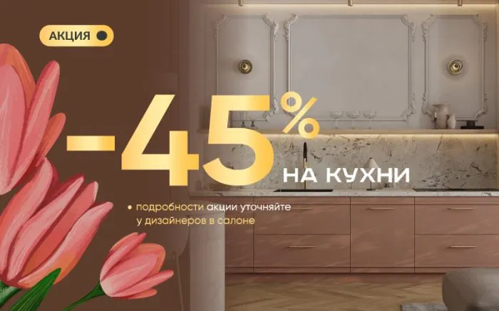 Обновите свою кухню с невероятной скидкой -45% на кухни из категории хиты продаж! Это уникальная возможность создать индивидуальный дизайн, который идеально впишется в ваш интерьер. Мы предлагаем высококачественные материалы и надежные решения, чтобы ваша кухня служила вам долгие годы. Не упустите шанс сэкономить и сделать свою кухню мечты реальностью!