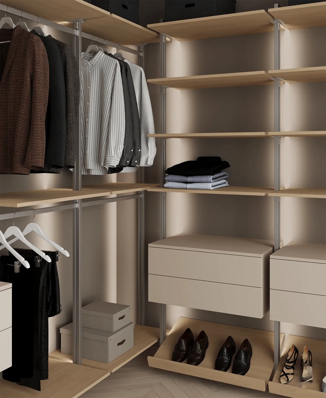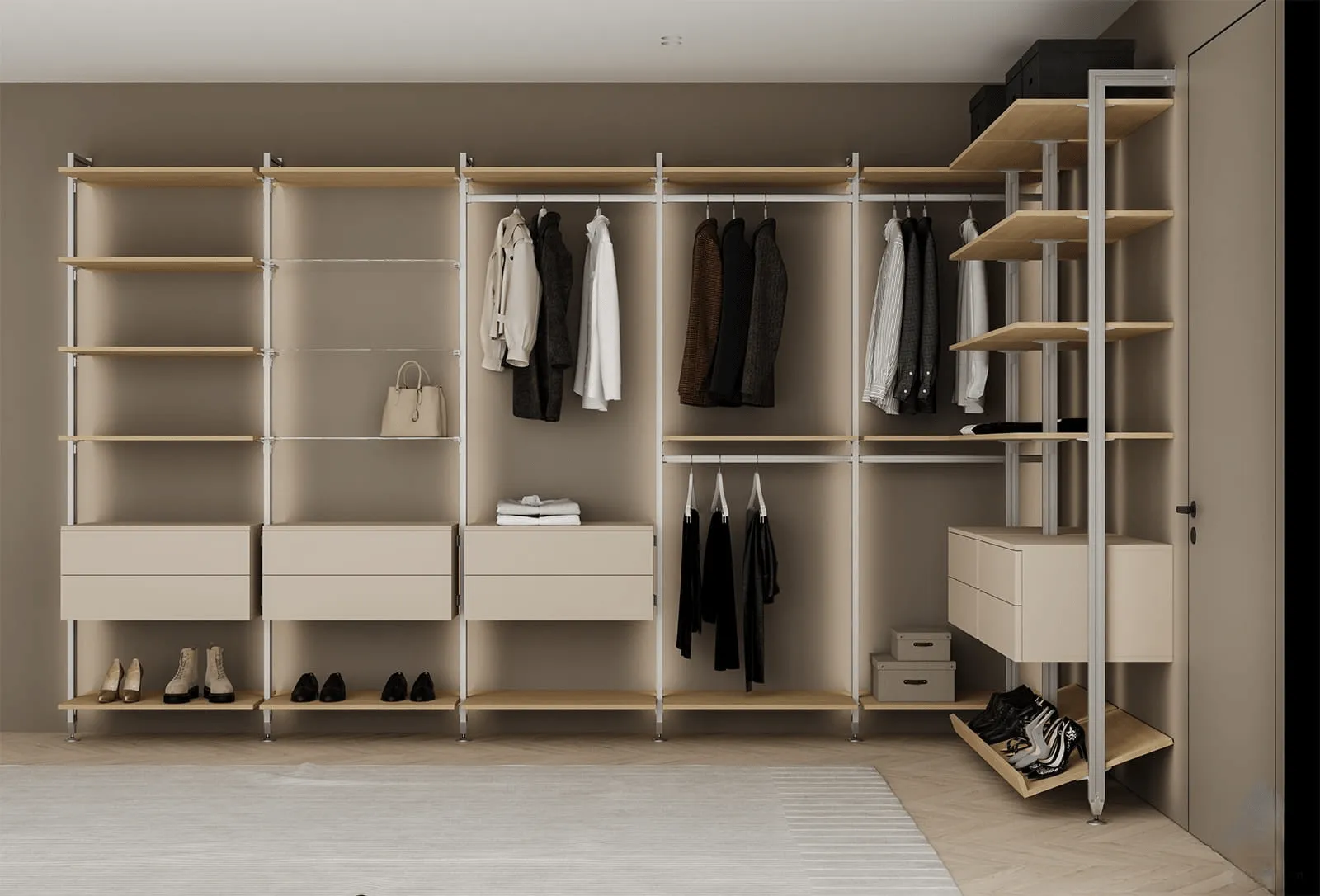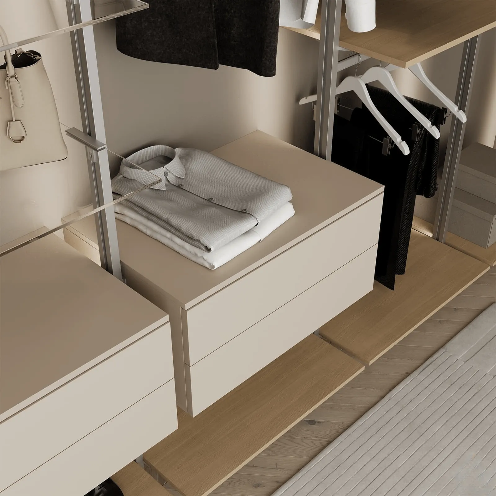 Навесные элементы: ЛМДФ (толщина 18 мм), декор Бежевый Супрамат / шпон дуба (толщина 19 мм), цвет #189 (масловоск Белый) / стекло прозрачное (толщина 6 мм)