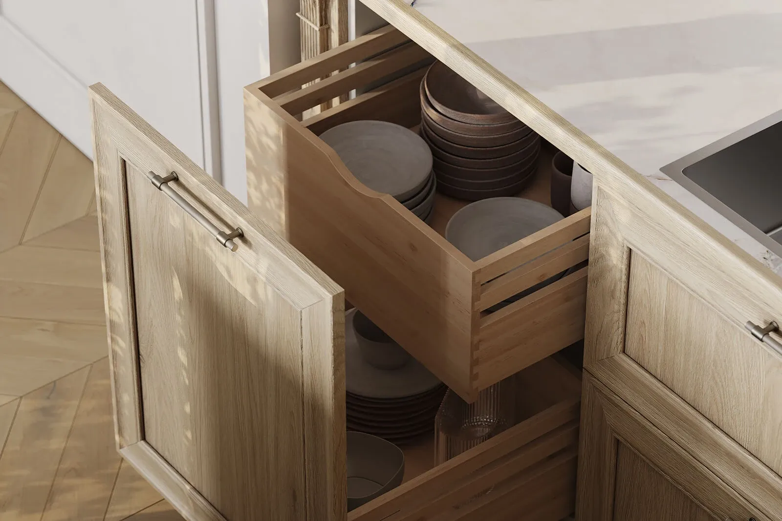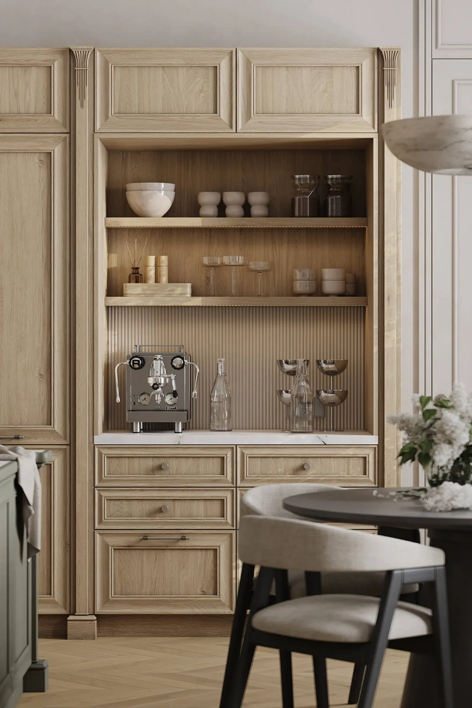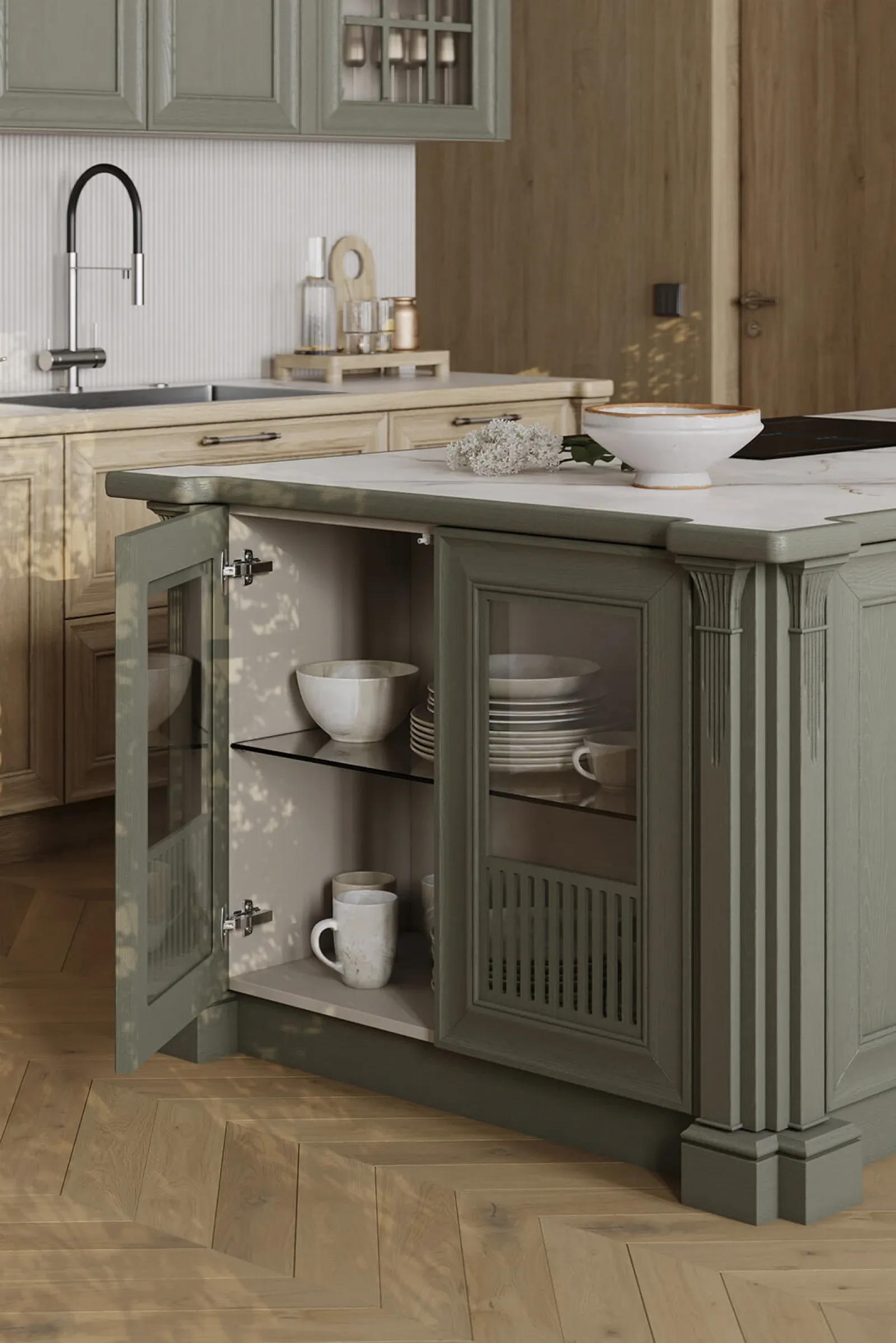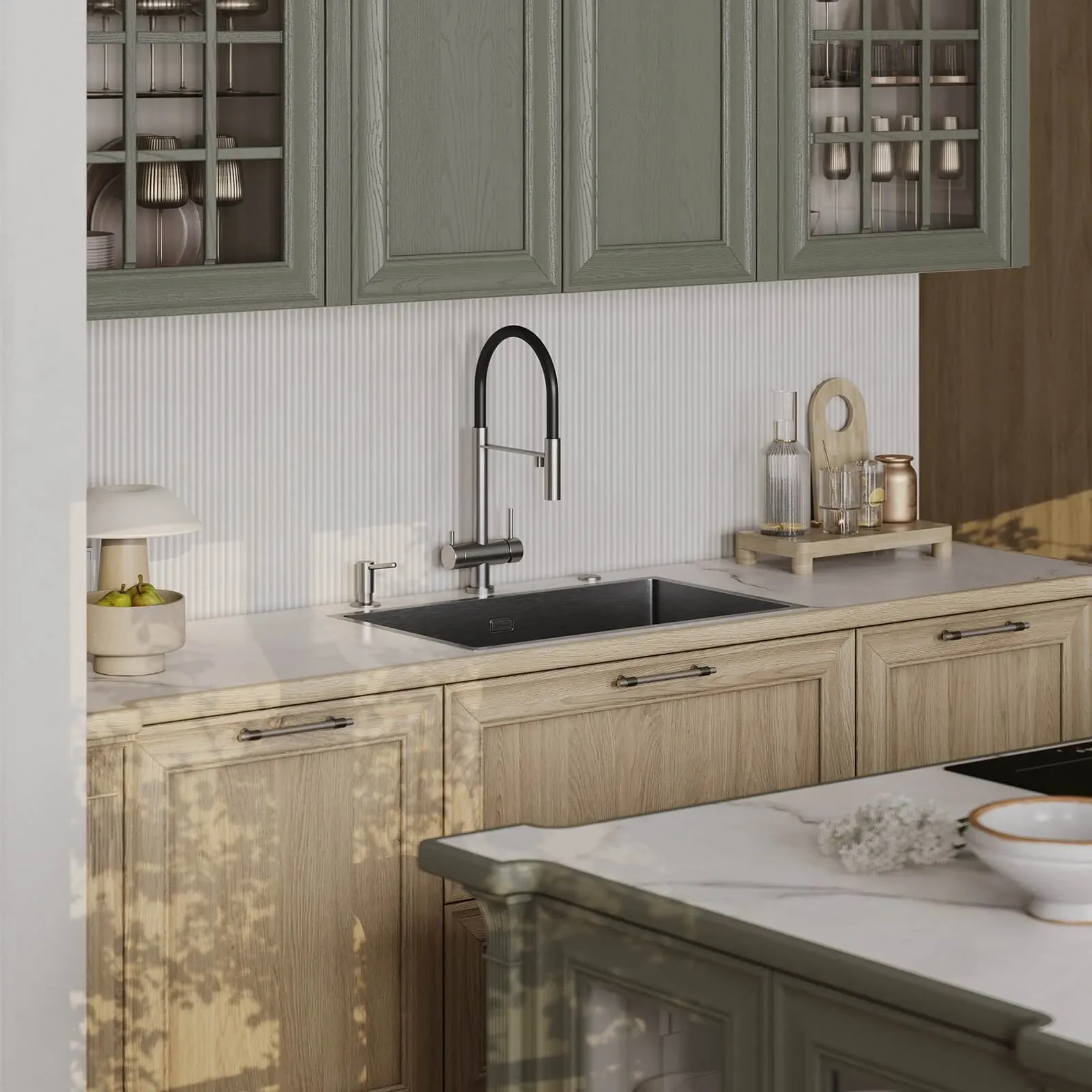 ФАСАДЫ Т747 Натуральный дуб, цвет NCS S 5010-G50Y / #190 (масловоск Натуральный) СТОЛЕШНИЦА Пластик HPL, 38 мм, декор Миони