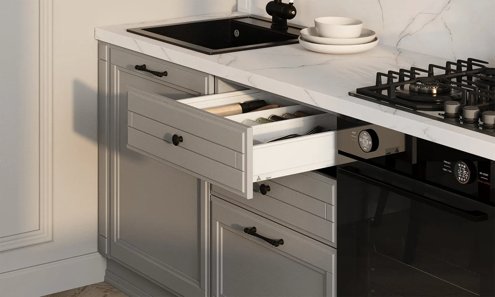 ФАСАДЫ Т762 Натуральный дуб, цвет 143 / NCS S 3502-G СТОЛЕШНИЦА Пластик HPL, 38 мм, декор Миони